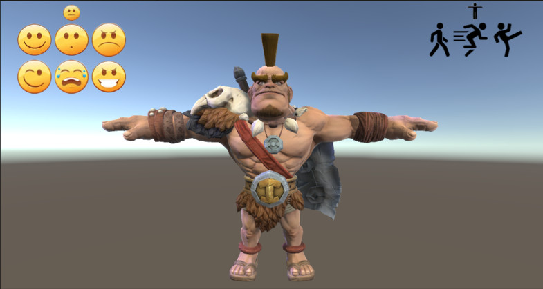 There is also sample scene "BarbarianScene", with sample cycles for walk & run, and sample face-expression emotions .