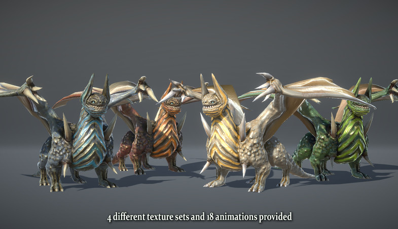 - 18 animations(Dragon The Terror Bringer) and 6 animations(Dragon Boar) fully compatible with Mecanim Generic(See YouTube Video on the left side).