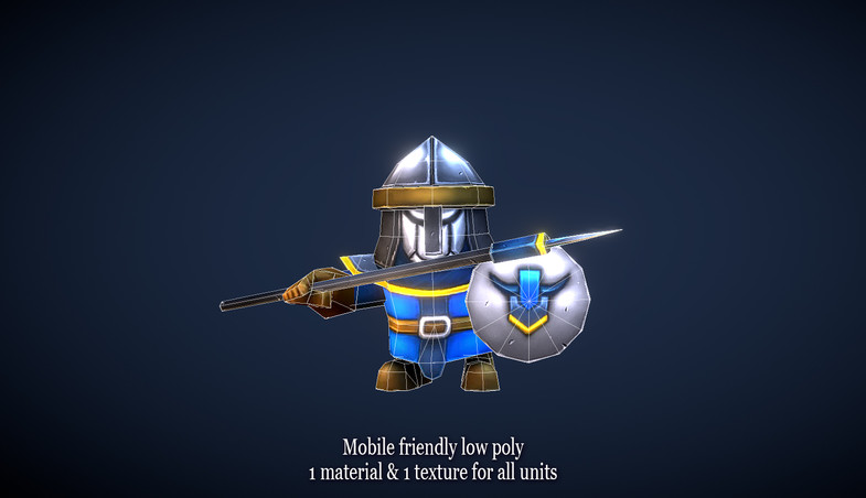- Optimized for mobile games(low poly), 1 texture and 1 unlit material for this unit.
