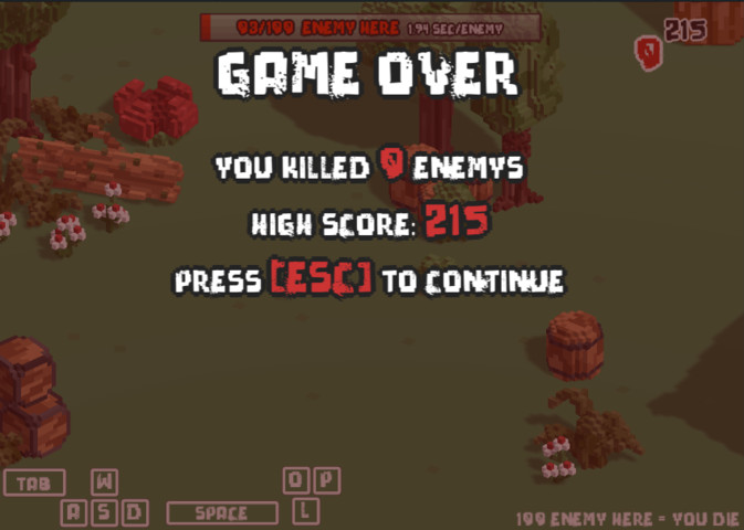 This game is a very simple action game. Every once in a while a monster came to the stage, if there were 100 monsters on the stage, the game will over. So the player need to kill these monsters as soon as possible.
