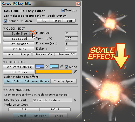 Includes Cartoon FX Easy Editor to easily scale any effect, and change other properties!